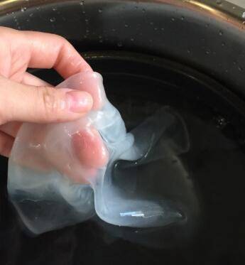 准备一个冷水盆,等粉皮透明,将盘㓎入冷水盆中。