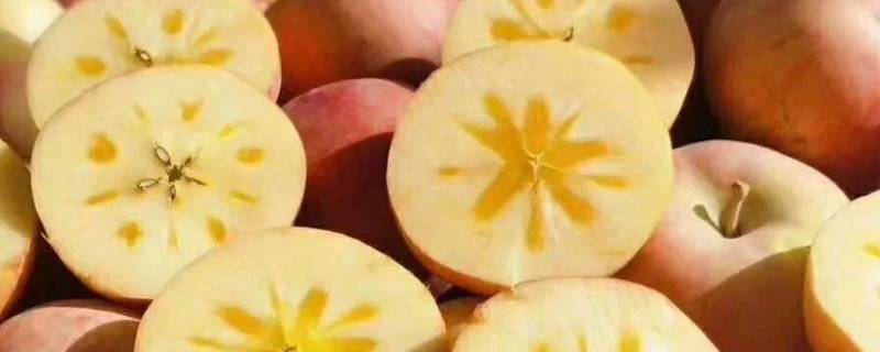 内部状态:糖心苹果之所以被叫做糖心苹果,因为其内部的果核部分和一般苹果有非常大的差别,切开之后果核半透明,像是冰糖一样镶嵌在果肉上,而普通苹果果核是黑色。