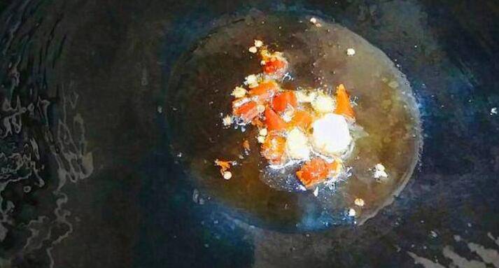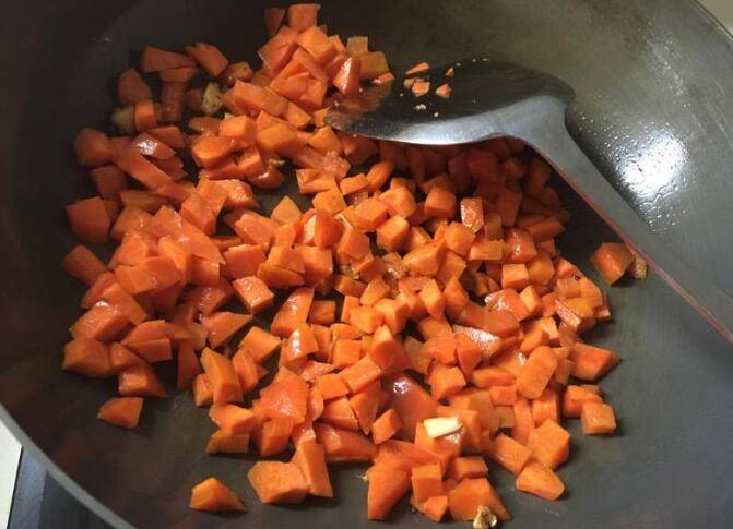 3、胡萝卜 青红椒去籽切小丁,大蒜切片。