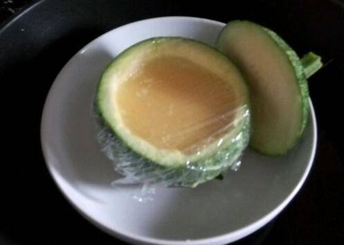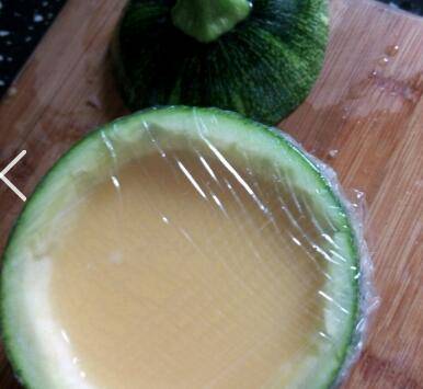 将蛋液倒进小南瓜里,不要太满了,覆盖2层保鲜膜,周围封好一点。