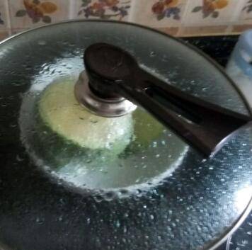 盖盖子后,中小火蒸20分钟,可以看到水蛋液变颜色了。