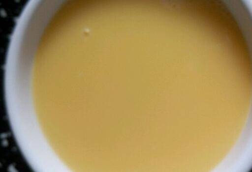 一个鸡蛋打到小碗里,加3倍纯净水,加入1/3小勺的淀粉、1/4小勺盐,搅打均匀。