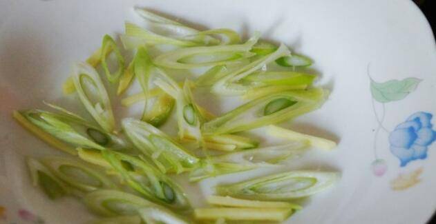 6、姜丝、葱丝平铺在盘底。