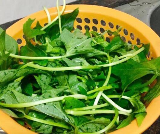 准备食材:薯苗400克、油5克、盐4克、蒜5克。
