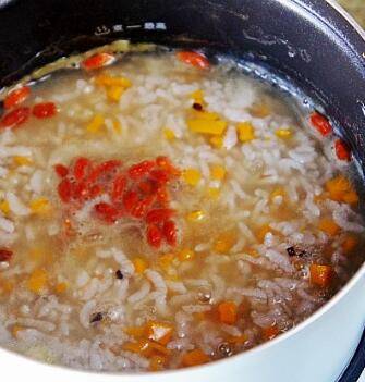 锅中加入适量的水,大火烧开,水开下入淘洗干净的多谷米和南瓜丁,大火烧开,小火煮至黏稠。