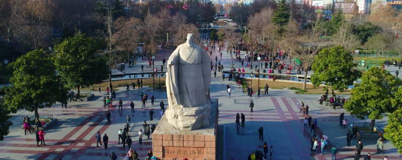 5、周公营造洛邑雕塑:位于洛阳市中心的周王城广场,雕像位于周王城广场中心位置,地面铺装采用《王城图》图案。整个作品分群雕、浮雕及钱绍武的题名等几部分。