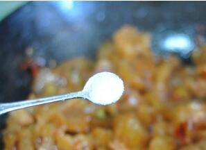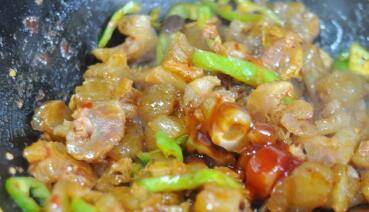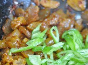 最佳答案准备食材:熟牛蹄筋、尖椒、油、白酒、葱、花椒、八角、姜、郫县豆瓣酱、蒜、盐、生抽、川香汁、鸡精。锅里倒入油,放入花椒、八角、郫县豆瓣酱、葱、姜、蒜炒出红油。倒入熟的牛蹄筋炒香。倒入白酒去腥。加入盐和生抽搅匀。放入尖椒断生。最后淋点川香汁和鸡精出锅。