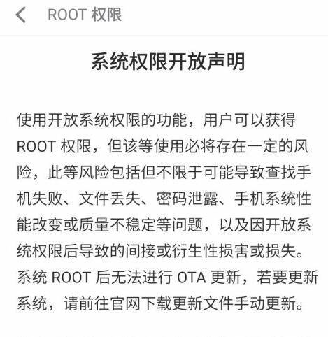 然后就能看见ROOT权限解放说明,开放ROOT之后遭到损失需要自己负责等;