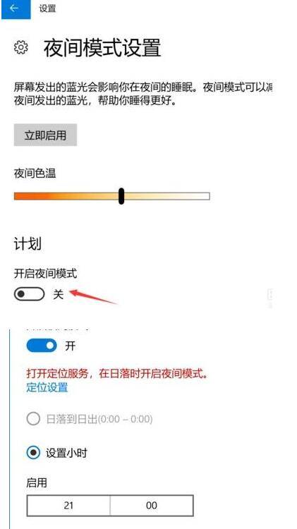5、最后可配置定时开启,如图1,最下方有计划项,将开关打开后,会多出多项内容,如图2,可通过定位自动识别是否是夜晚,也可自己设置时段,到时会自动打开。