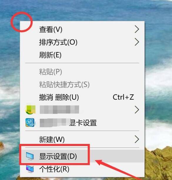 1、桌面上右击,点击显示设置。
