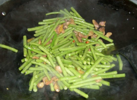 放进豆角,最后加盐和酱油调味即可。