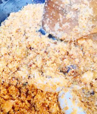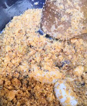 放入鱼籽,不断翻炒,中途加少许料酒去腥,最好用不粘锅,炒制鱼籽啪啪作响,就表明鱼籽炒到火候啦。