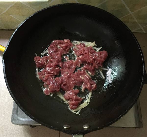5、热锅凉油,下姜丝炝锅。