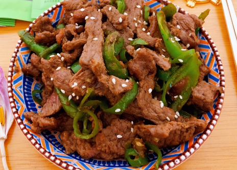 三、螺丝椒炒牛肩肉片: