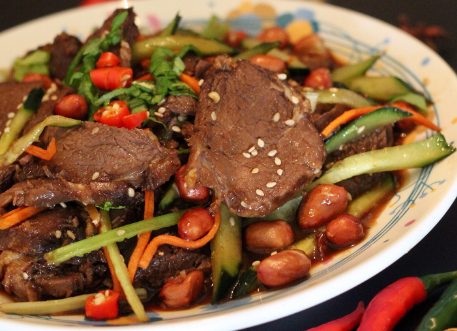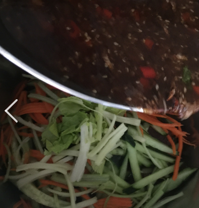 加入陈醋,撒点芝麻。就可以了。稍许冷却后加入切好的牛肉片盆里。
