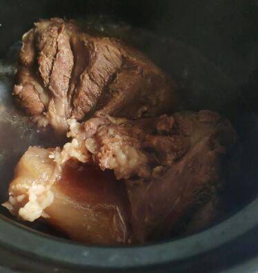 三、凉拌牛腱子:牛腱子洗净,放入锅内,把香料,酱油,盐,冰糖,加适量的水熬制。砂锅熬最好,我熬了一小时,中途加了2次水。