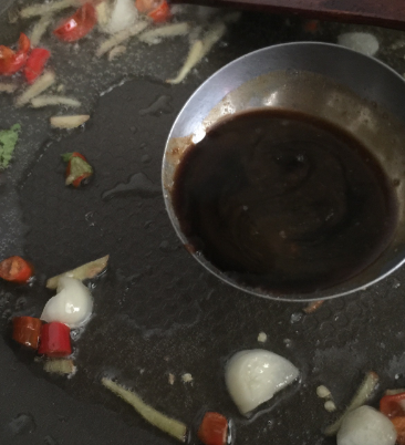 热锅热油,蒜姜辣椒爆炒,然后加入刚熬制剩下的卤水。