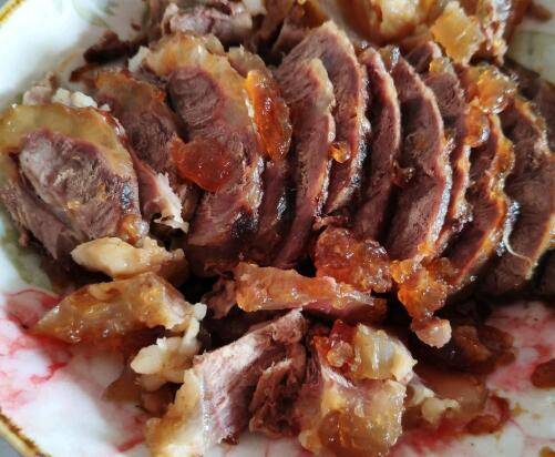 牛肉煮好后把里面的调料全部捞出,只留下牛肉和汤汁,统一把它放入一个盆中,汤汁不要留太多,多的可以留着下面条时浇上,留到正好能漠过牛肉一小半就行,吃卤牛肉一定要放凉以后再切,这时候的牛肉口感是最好的,放凉以后的牛肉汤汁也变成了牛肉冻,和牛肉一起吃更是美味。