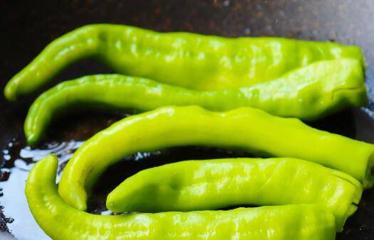 锅里放1勺油,青椒下锅煸炒,用锅铲不断挤压。
