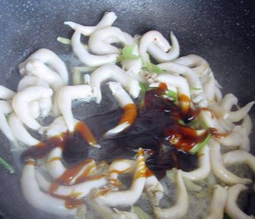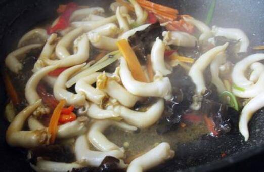 将鸟贝倒入翻炒,再加些蚝油;
