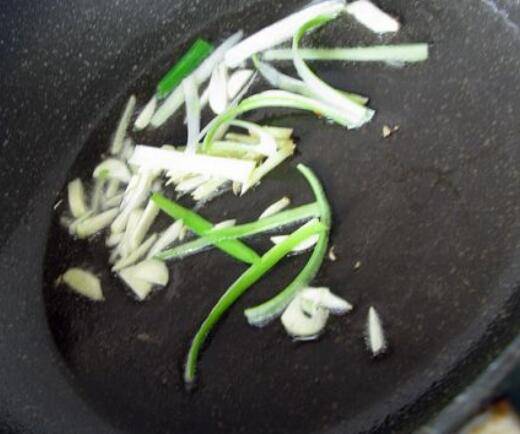 先用葱花爆香锅。