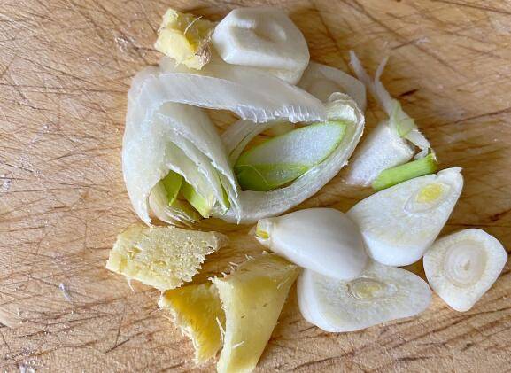 5、葱姜蒜切碎。