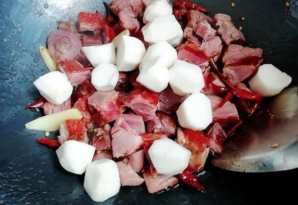 用料:小芋头8个、烟熏腊鸭腿两个、花生油40克、盐1克、生抽20克、料酒30克、姜1块、干辣椒5克。