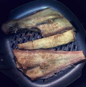 3、放入空气炸锅,预热3分钟,然后放入鱼倒入孜然粉,开始烤180度5分钟,打开看看情况,然后继续5分钟。