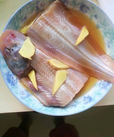 1、准备食材:舌鳎鱼、料酒、姜、盐。