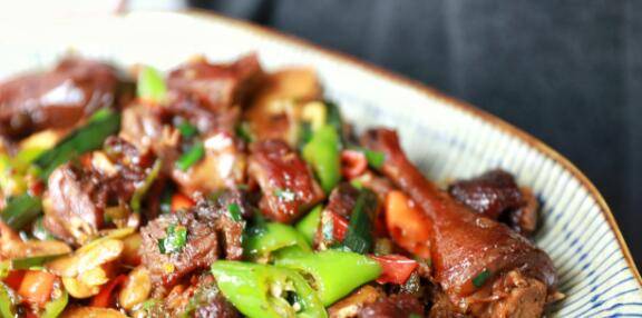 腊鸭半只、姜一整块、大葱一根、香葱四根、大蒜一整颗、青辣椒四根、红辣椒四根、小米椒两根、蒜叶两根、辣椒油适量、生抽一勺、蚝油一勺、料酒一勺、白糖适量。