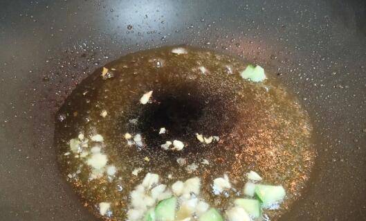 锅内留底油,放入大蒜煸炒片刻。