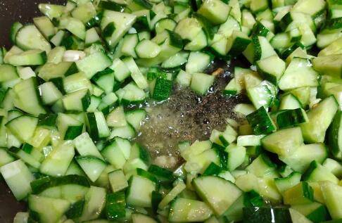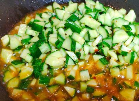 倒入黄瓜丁大火快速煸炒几分钟。