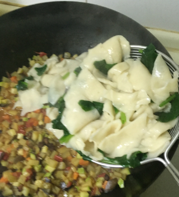 开水下锅煮,将煮好的面捞入炖好的菜中,搅拌均匀。