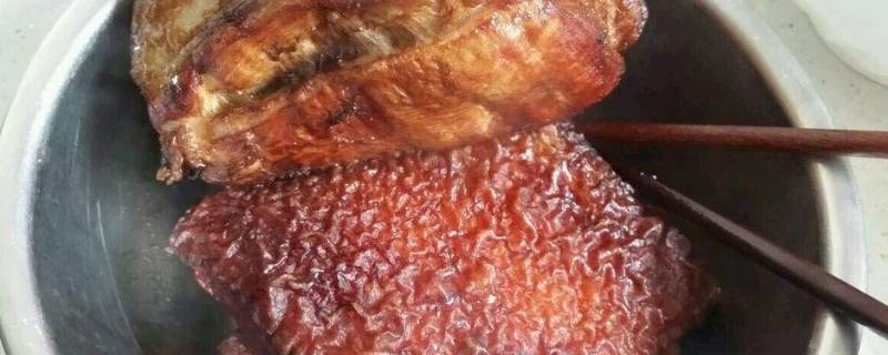 捞起沥干水分,用牙签在肉皮上插洞孔,在肉皮上抹上老抽,晾干备用。