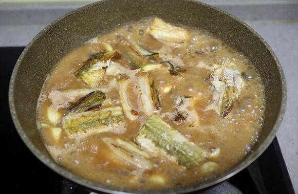 10、汤煮开后,将鱼块入汤中,中小火,盖盖子焖炖15分钟,充分入味。