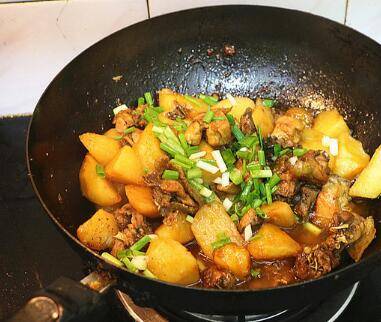 主料:土豆2个、鸡肉适量。辅料:料酒1勺、蚝油一勺、生抽适量、白糖一小勺、清水大半碗、小葱适量、食盐适量、食用油适量、生姜三片、大蒜适量、蒸鱼豉油1勺。