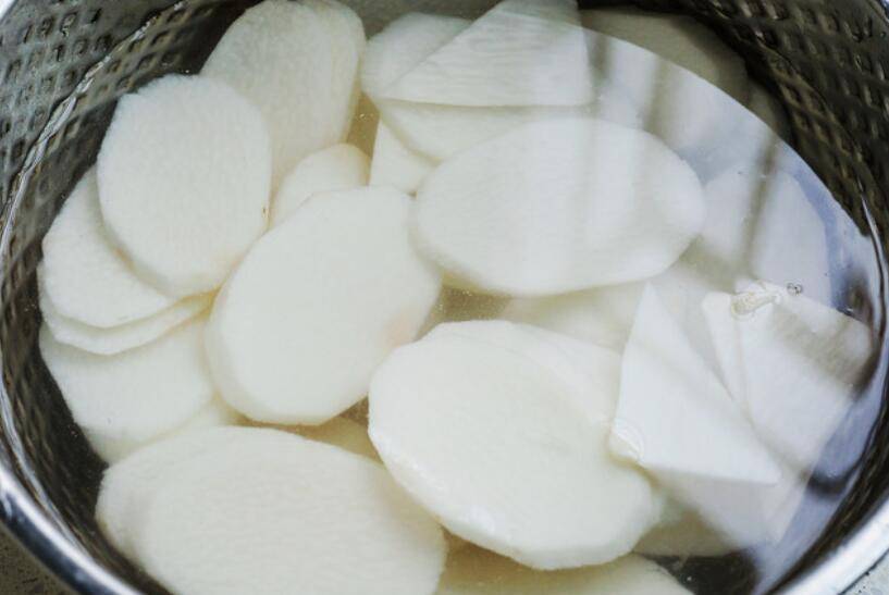 2、切好的山药片用清水洗净。