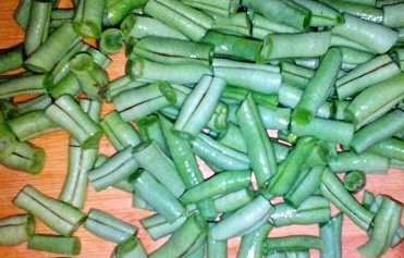 豆角、鸡肉、葱蒜、干辣椒都切成丁;