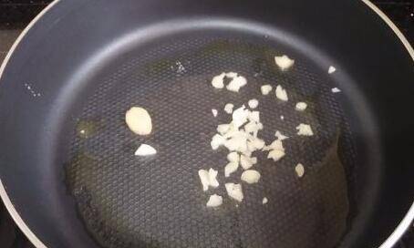 热锅下油,先爆香蒜末。