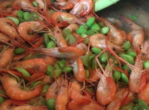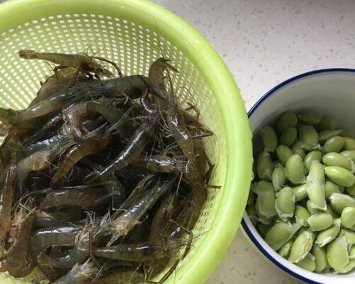 用料:河虾400克、毛豆100克、生姜3片、大蒜2瓣、料酒50毫升、盐3克。
