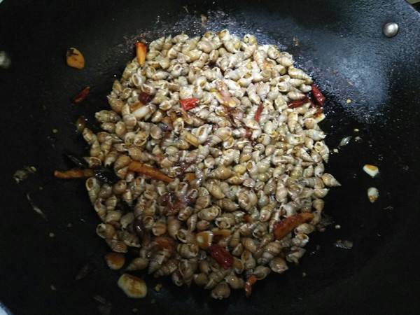 6、放海螺丝炒匀。