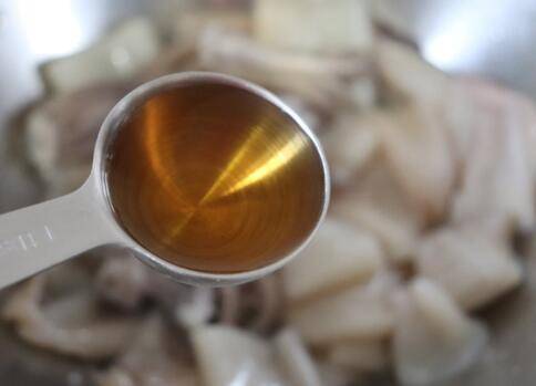 3、切好的鱿鱼中加入一大勺料酒,腌制十分钟。