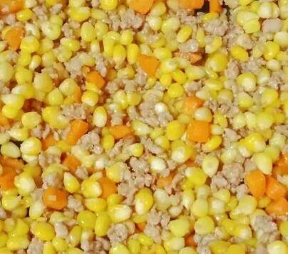 7、锅中热油,下蒜末爆香,倒入玉米粒和胡萝卜丁翻炒。