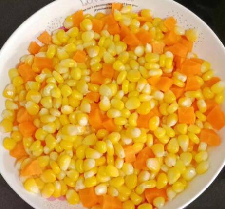 4、锅中烧水,水开放入胡萝卜玉米粒。