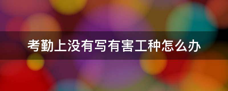 考勤上没有写有害工种可以向上级或者人事部门提出申请,要求列入有害工种。考勤,顾名思义,就是考查出勤,也就是通过某种方式来获得学生、员工或者某些团体、个人在某个特定的场所及特定的时间段内的出勤情况,包括上下班、迟到、早退、病假、婚假、丧假、公休、工作时间、加班情况等。通过对以前阶段、本阶段内出勤情况的研究,进行以后阶段的统筹、安排等。考勤是为维护企业的正常工作秩序,提高办事效率,严肃企业纪律,使员工自觉遵守工作时间和劳动纪律。