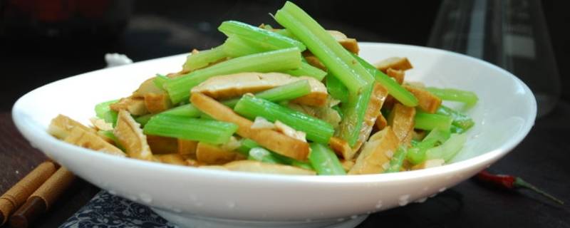 最佳答案用料:芹菜260克、豆干150克、葱1段、姜2片、盐1勺、鸡粉1小勺、香油少许。1、豆干、芹菜切条。2、锅加水烧开,放入芹菜焯水十秒,然后捞出过凉沥干。3、另起锅,倒油,下入葱花、姜丝煸香。4、加入香干、芹菜炒熟。5、加入盐、鸡粉翻匀,出锅前淋入香油即可。