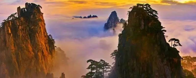 1、安徽黄山:位于安徽省南部黄山市,“奇松”“怪石”“云海”“温泉”被称为黄山四奇。