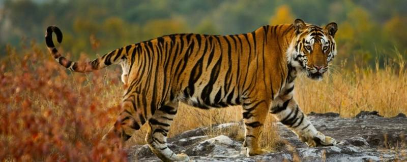 老虎身上的条纹是一种伪装,起到保护隐藏作用,与其生存环境有关系。老虎在捕食猎物时,会因身上有条纹,猎物不容易看到它,它就可以很容易抓住猎物。虎是典型的山地林栖动物,由南方的热带雨林、常绿阔叶林,以至北方的落叶阔叶林和针阔叶混交林,都能很好的生活。
