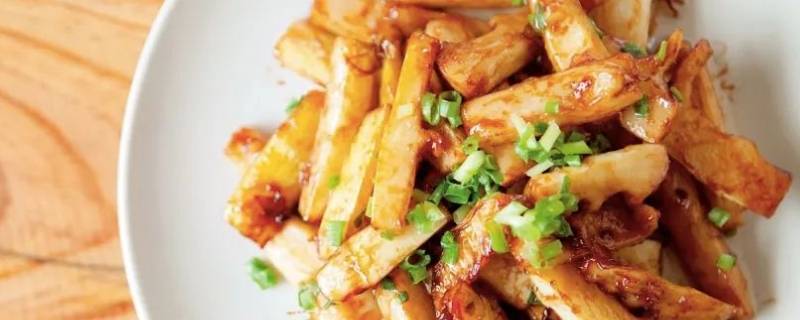 一、小炒春笋。准备食材:春笋400克、朝天椒2个、葱适量、生抽5ml、老抽5ml、料酒5ml、白糖5克、清水20ml、盐适量。
