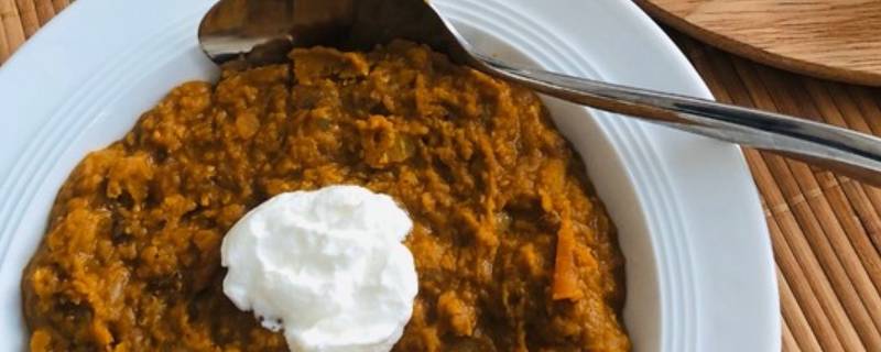 1、准备材料:红扁豆350克、洋葱1个、胡萝卜1根、土豆1个、橄榄油2勺、黄油20克、番茄沙司70克、咖喱粉15克、孜然粉10克、盐10克、酸奶油适量。